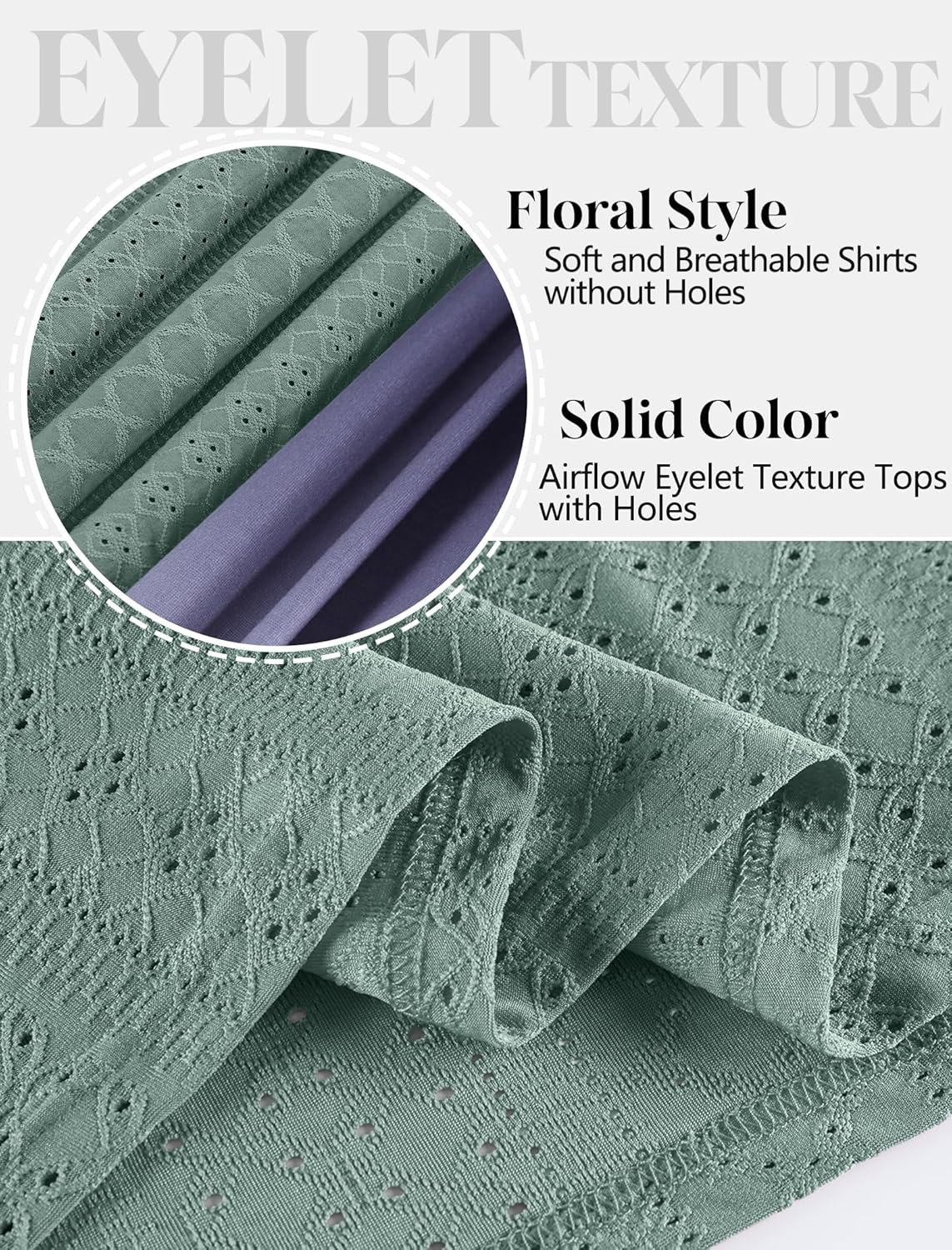 SAMPEEL Womens Summer Tops Trendy 2025 Eyelet Crossed V Neck T Shirts Loose Casual Short Sleeve Tshirts Shirts Fashion