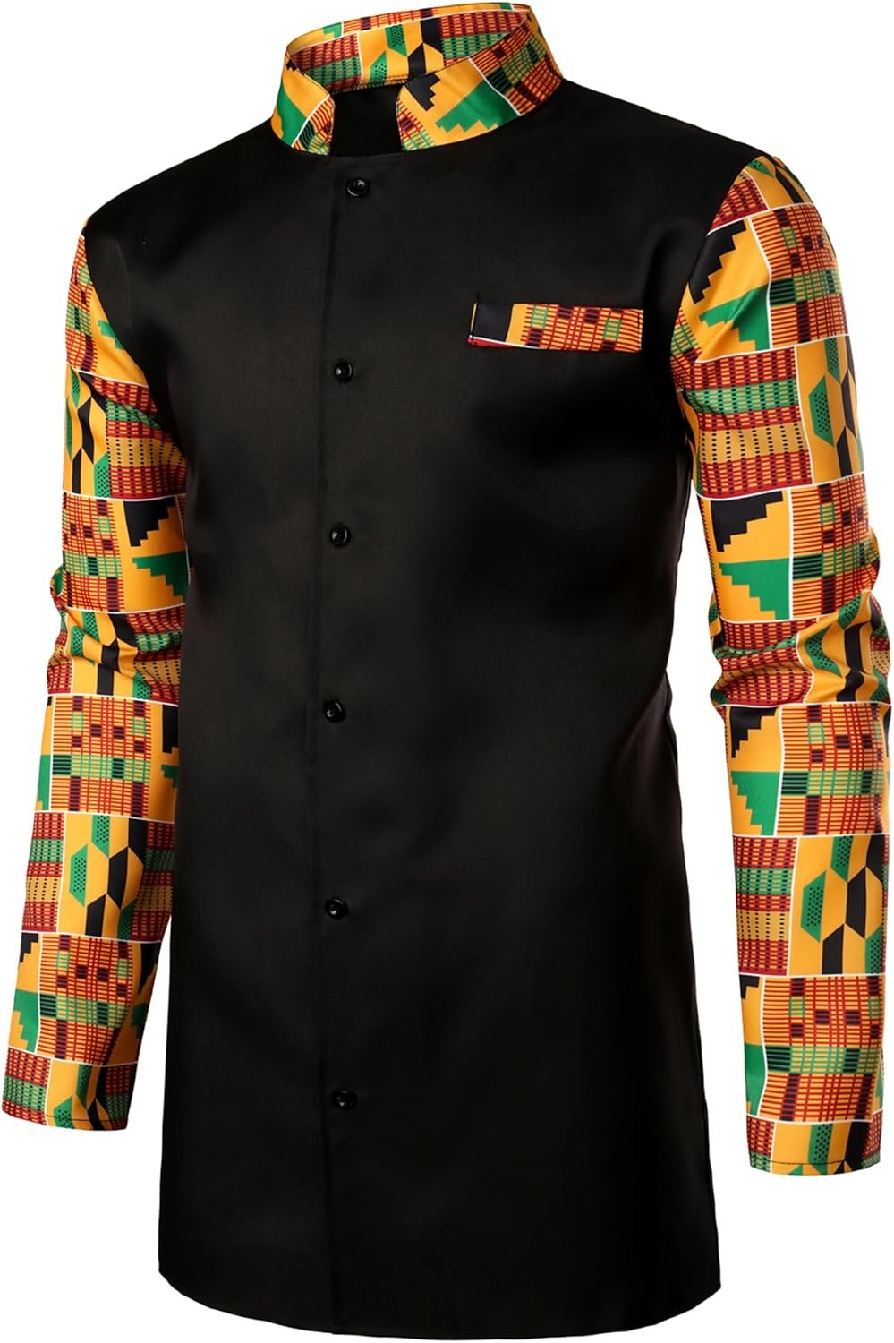 ZEROYAA Men’s Kente Print Suit Long Sleeve Button up African Dashiki Shirt and Pants Ethnic 2 Piece Outfit
